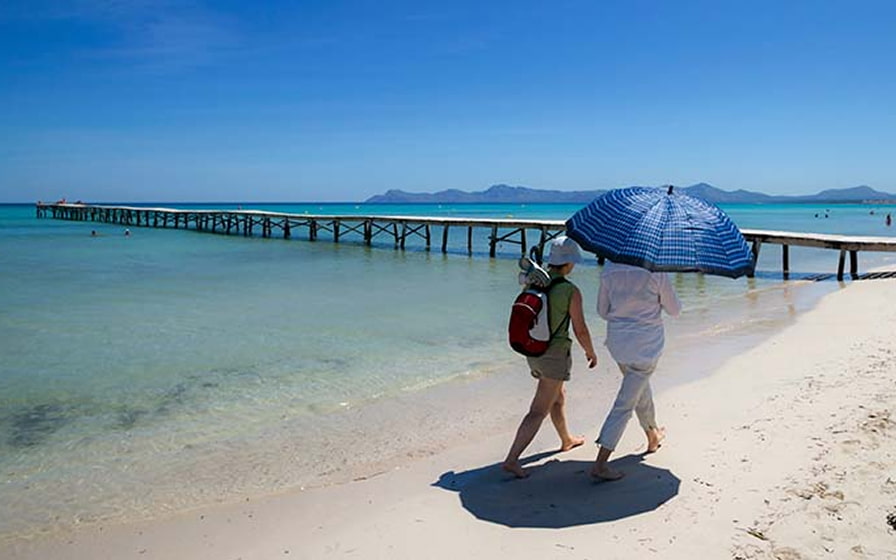 ¿Te imaginas caminar por una pasarela de madera que se adentra en el mar, rodeada de aguas cristalinas y arenales de fina y blanca arena? Playa de Muro es el destino ideal para convertirlo en realidad.