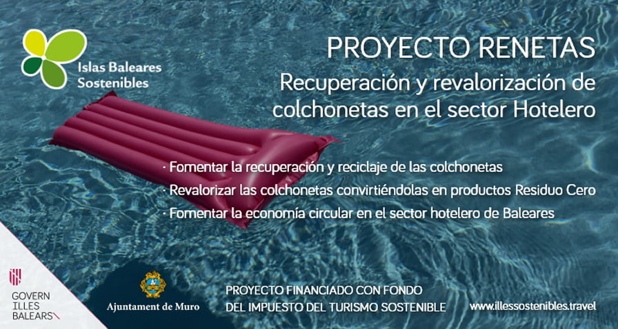 The Renetas project is funded by the Sustainable Tourism Tax Fund. This initiative involves the collection of mattresses and floats, used by tourists, which cannot be recycled as they are made of PVC and the only solution to dispose of this waste is through incineration.